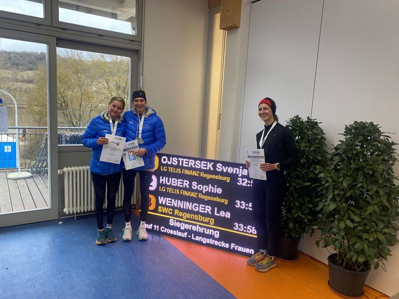 Da wollten die Frauen natürlich nicht zurückstehen und holten mit der Bronzemedaillen Gewinnerin Lea Wanninger, Jana Vogel (8.) und Lisa Witzel (10.) die Langstrecken Silbermedaille hinter der LG Telis Finanz und vor dem MTV Ingolstadt. Eine weitere völlig unerwartete Goldmedaille holte sich das U20/U18 w Team mit Lena Bruischüzu (8. / U 18), Annika Bruischütz (11. / U 18) und Franziska Ertl (6. / U 20). Lyssa Fernandes und Sophie Adler landeten in der U 23 bzw. Frauen Mittelstrecke auf den Plätzen 14 und 18. Tapfer schlug sich das SWC U 16w Team mit Kati Wied, Emma Wenzlaff und Ida Huber auf Platz 7.